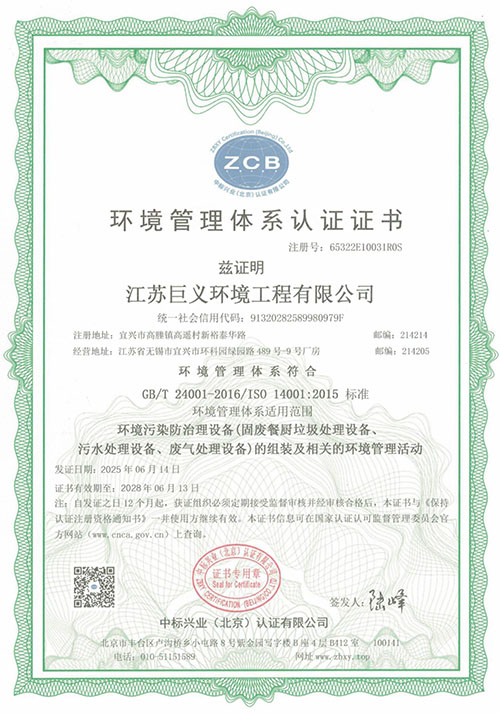 环境管理体系认证证书